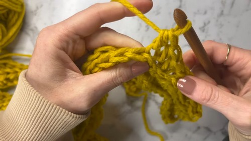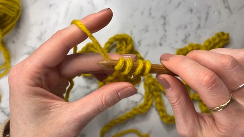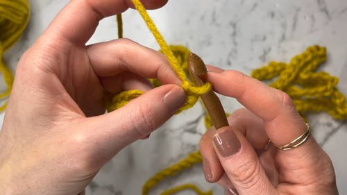 - Yarn over, insert your hook into the third chain from the hook.