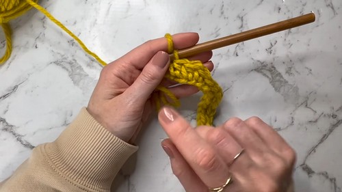 - Yarn over again, pull through one loop.