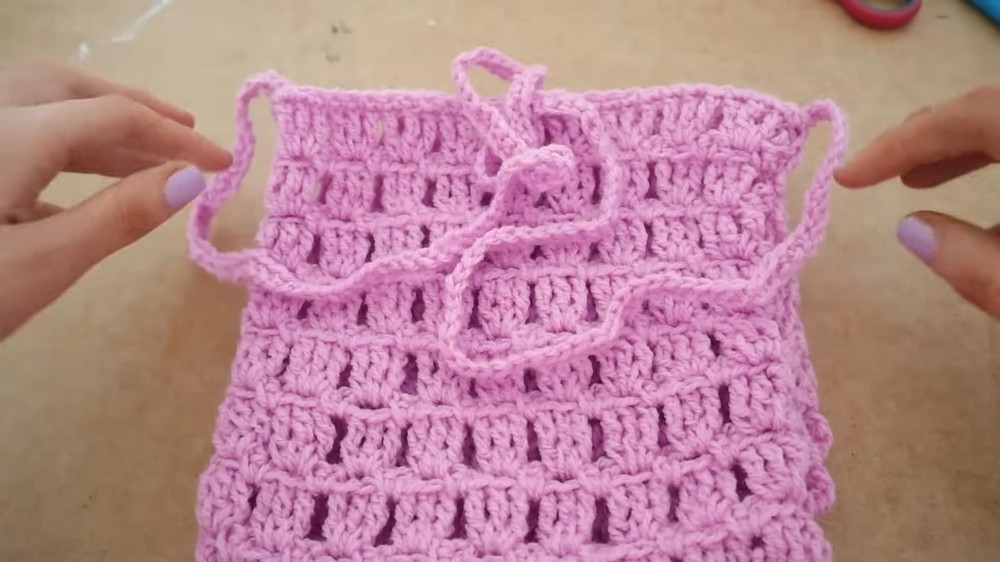 - Continue in sc up the chain for the handle, across the top of the bag to the opposite handle, and down the second handle.