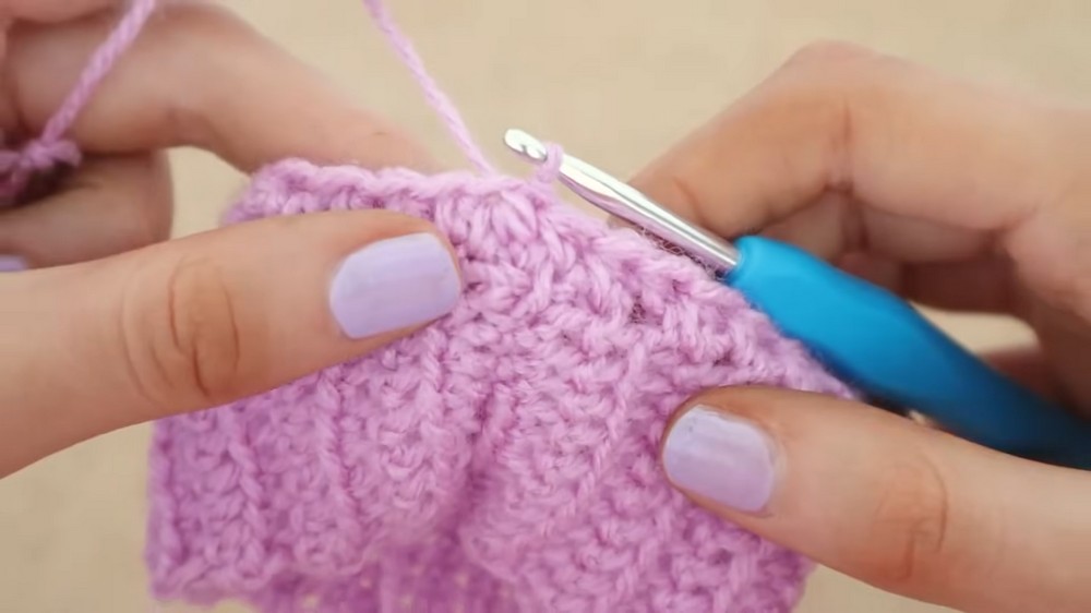 - Ch 1, turn. FLO sc in each st across. (This creates ribbing)