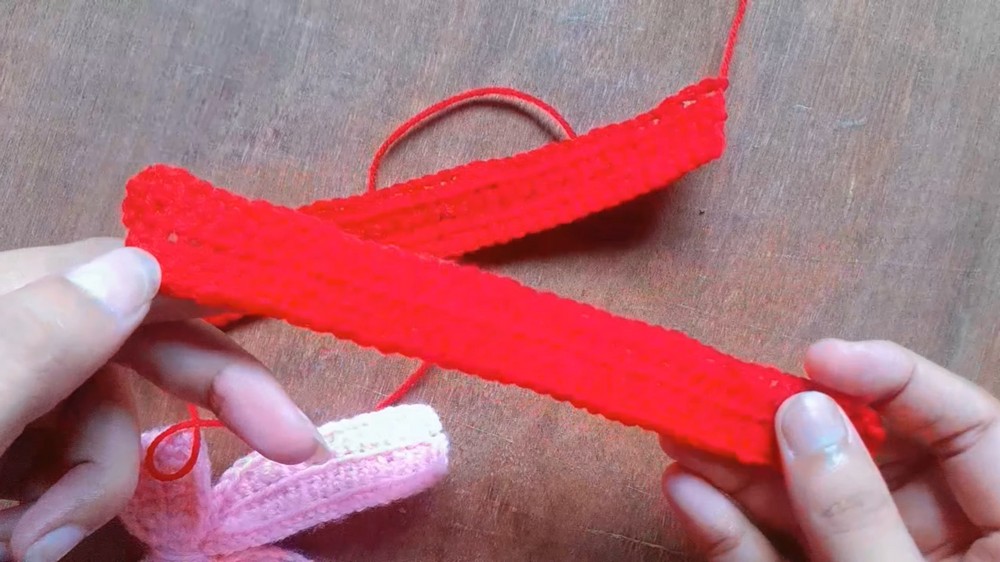 1. Repeat Step 1 (Rows 1–3) to create a second band for the center portion of the bow.
