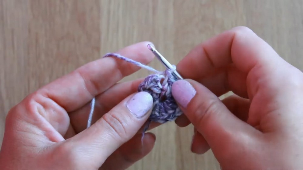 - Create a flower following the previous tutorial (beginning with a magic ring and several rounds of petals).