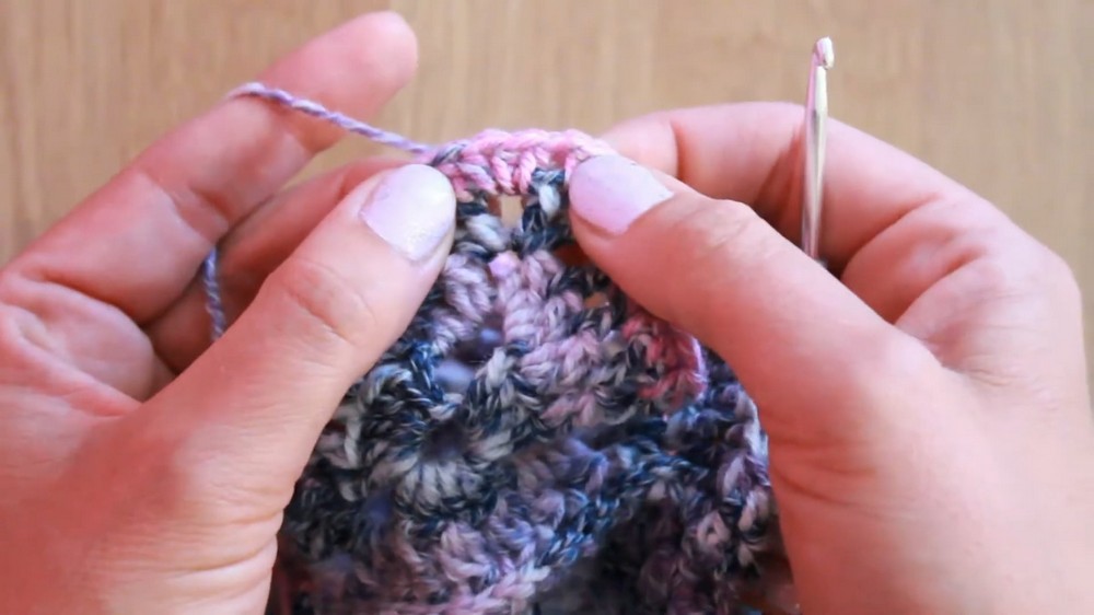 - In corners (triangle edges), make 3 hdc into the chain space to maintain shape.
