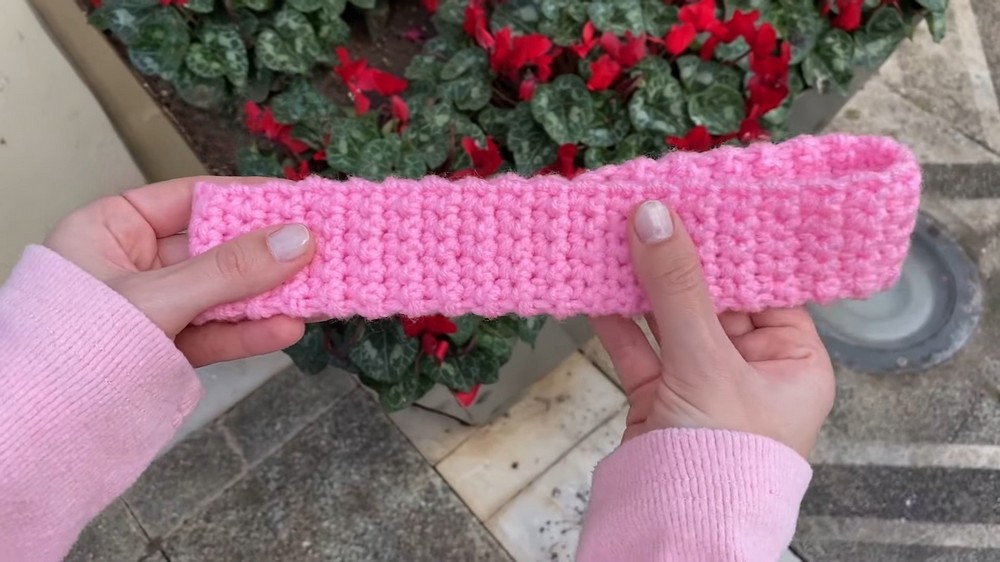 - Repeat this row until the band fits comfortably around your head.