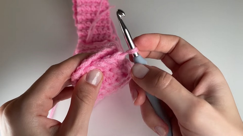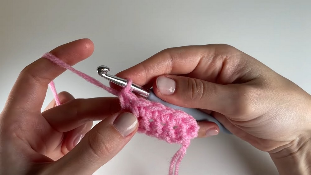 - Begin your next sc as usual (insert hook, yarn over, pull up loop).
