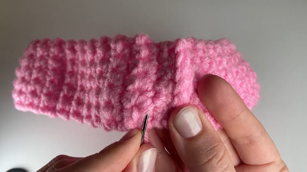 - Repeat slip stitches across all stitches to seam the headband.