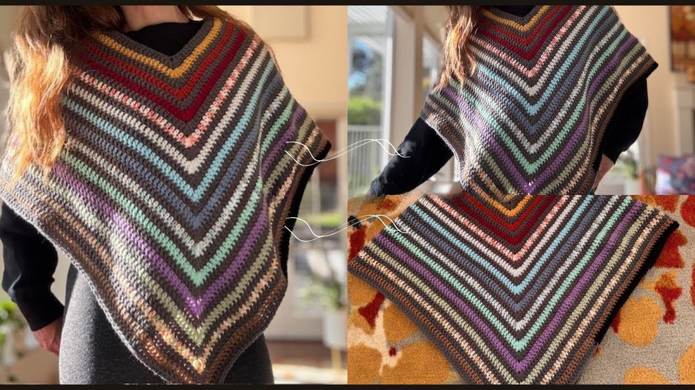 Brighten your wardrobe with this free crochet colorful poncho pattern, that’s cozy warmth features vibrant hues and makes any outfit cheerful.