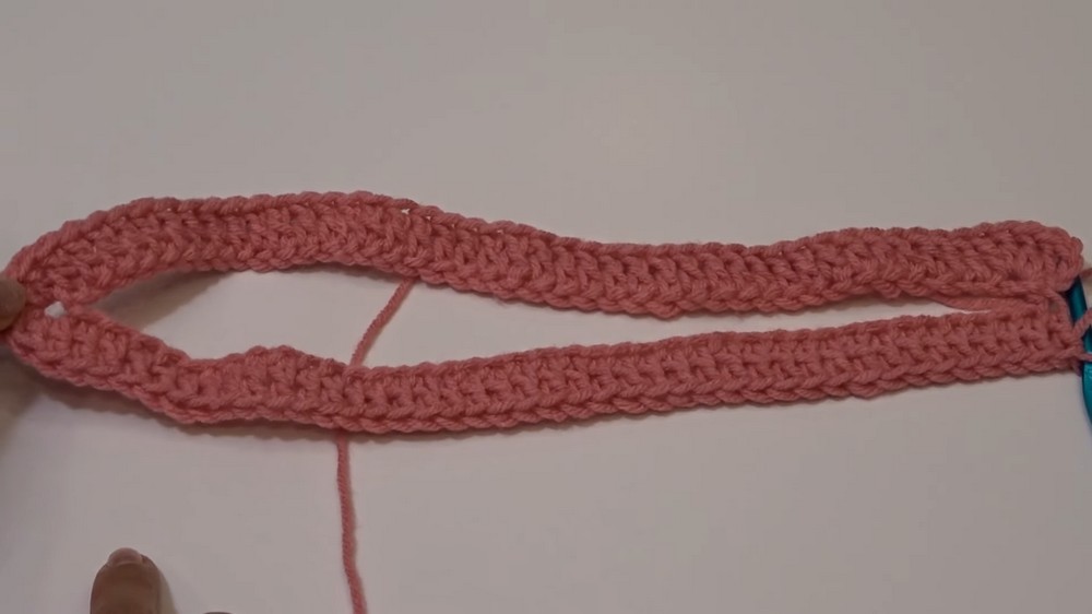 - Dc in each of next 40 ch (for child size, dc in next 30 ch).