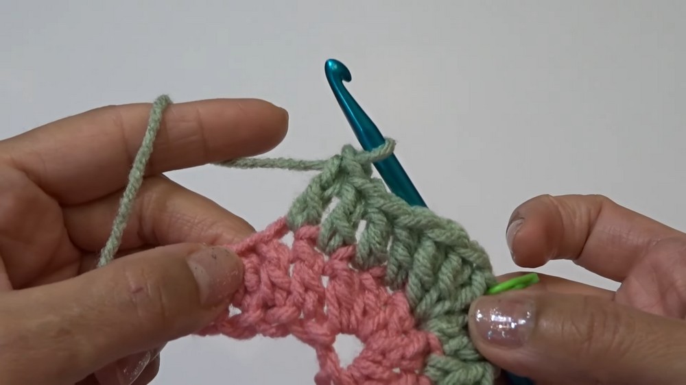 - 5 dc in the center st of that group (third dc; mark if needed).
