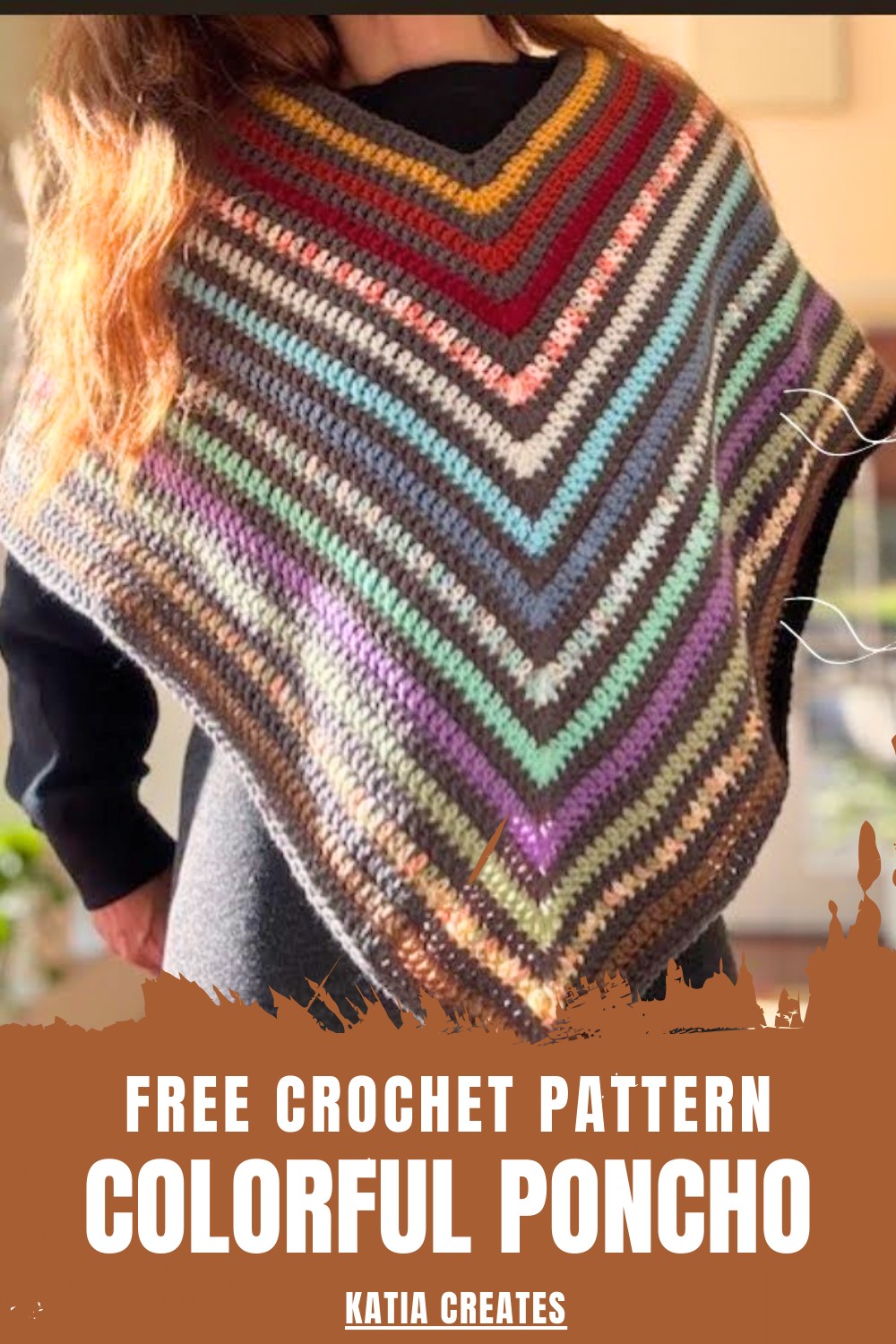 Trendy Crochet Colorful Poncho – Free Pattern,