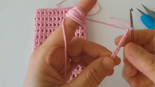 • Without breaking the yarn, ch 120–125 (for an average crossbody; adjust to your preference or height).