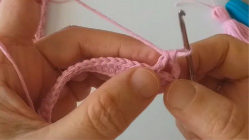 • For a thicker cord: After attaching, sc in each ch back to starting point; attach again with sl st.