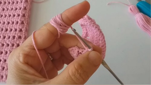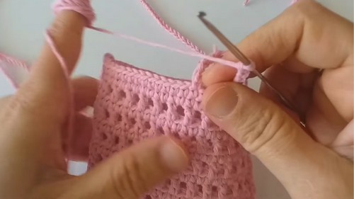 • Repeat dc mesh and sc rounds as desired for textured look.