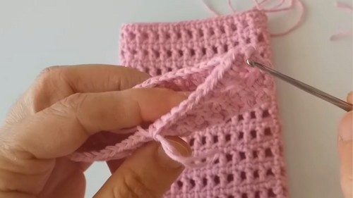 • Attach to the opposite edge/top of the case with a sl st.