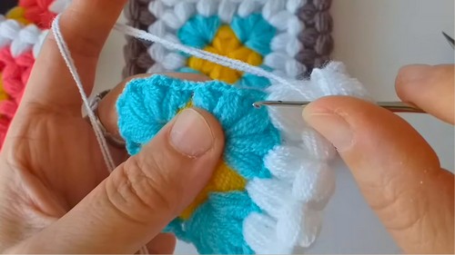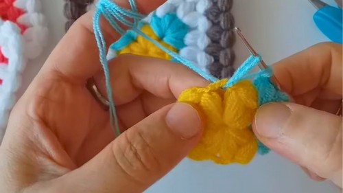 1. Join next color in any space between two puffs.