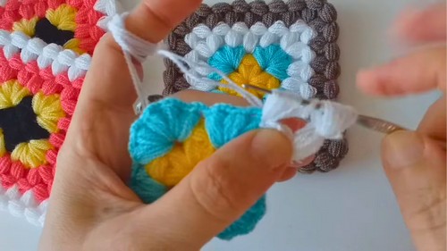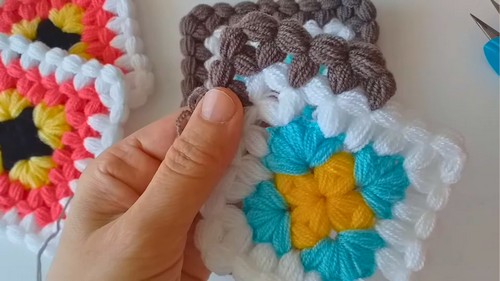 • Ensure you ch 2 between all puffs and between all corners for a flat motif.
