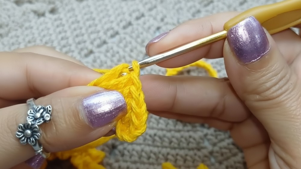 - Each petal should have exactly 10 dc (except possibly the last, which may use 11–12 to complete the end evenly).