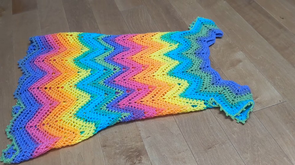 - Maintain the chevron pattern by skipping stitches at the valleys.