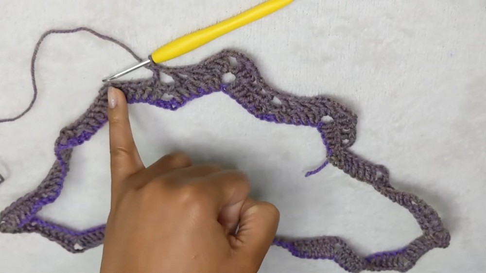 - Skip 3 stitches at the valley.