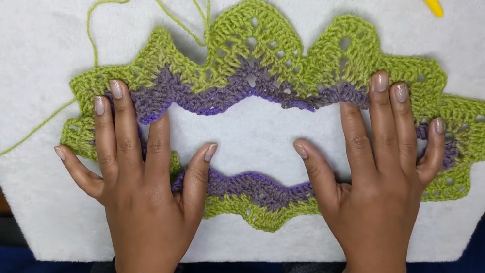 - Lay the circular work flat with the peaks evenly distributed.