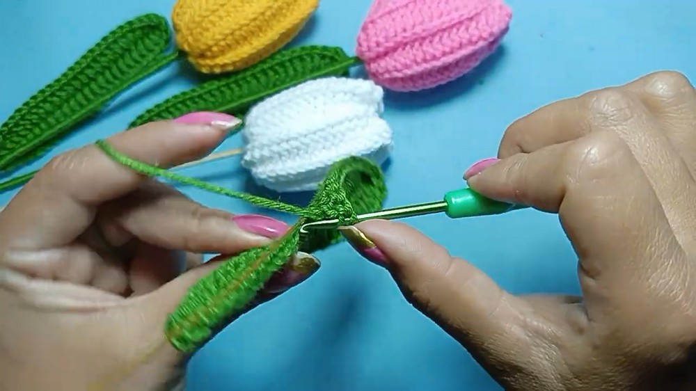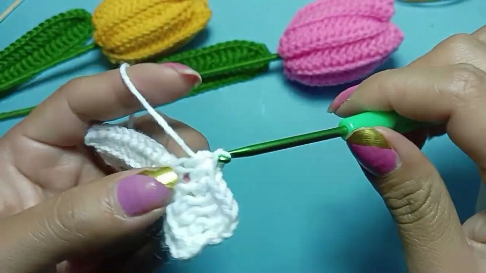 - Adjust the hook and yarn size as desired for smaller or larger tulips.