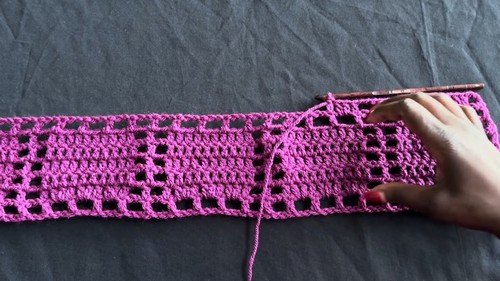 - Repeat this six-row sequence (one mesh row followed by five solid rows) until you achieve your desired panel length.