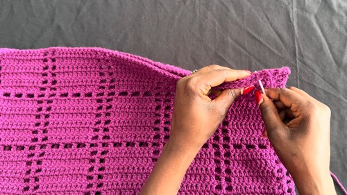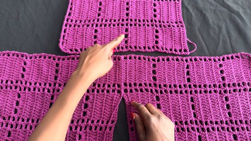 - Add more rows of mesh and solid repeats for a longer sweater.