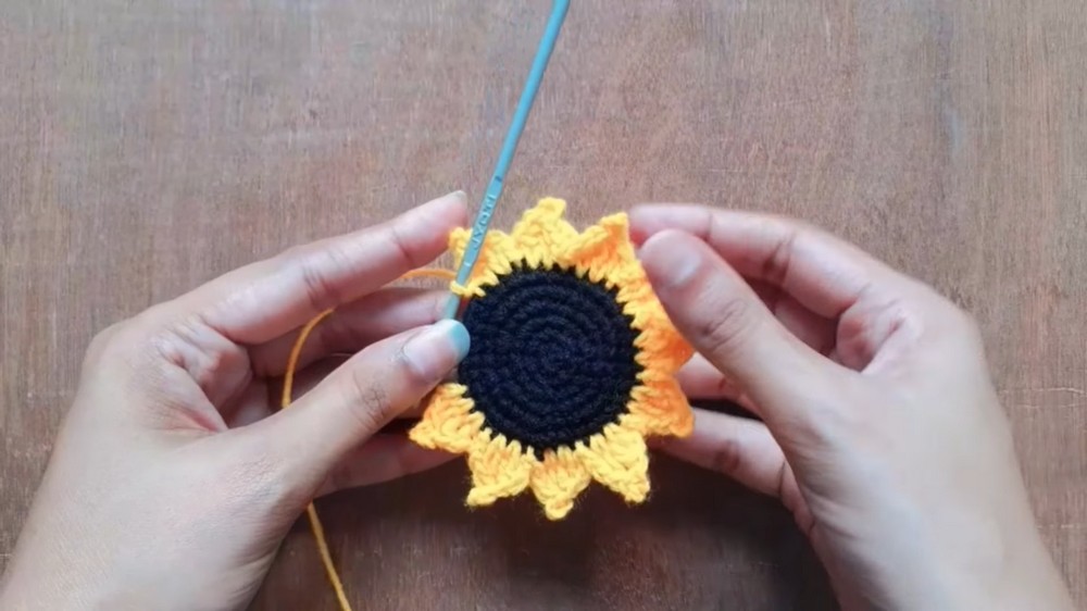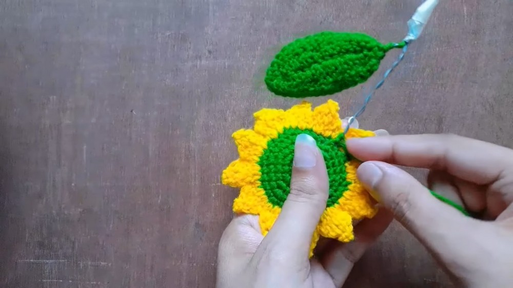 - Fasten the remaining petals using the same method, closing the sunflower.