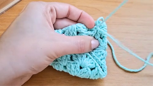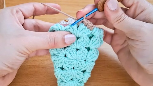 Granny Square Transformation: The project’s unique feature is creating a complex-looking tree shape by simply folding and sewing a flat granny square.