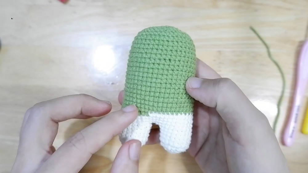 - Crochet 3 sc, decrease repeat 6 times, total 24 sc. Begin gradually stuffing.