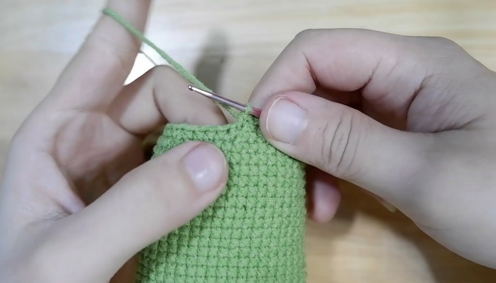- Skip first chain, crochet single crochet in second, half double crochet, double crochet, etc. following the pattern to form textured beard.
