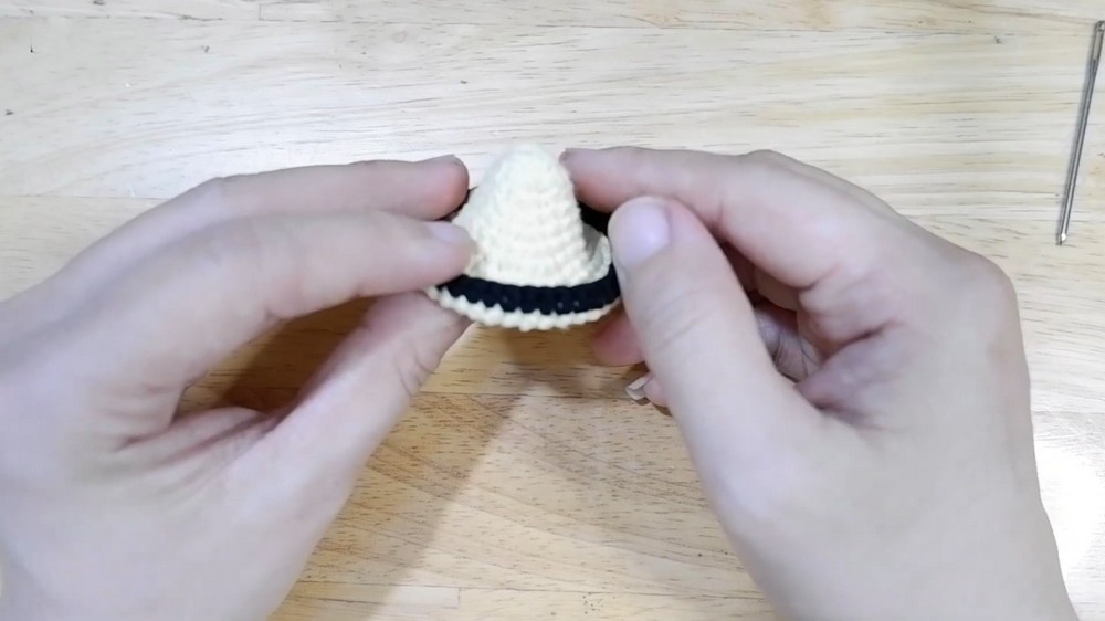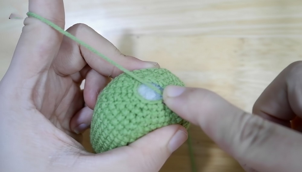 - Attach safety eyes between rows 23 and 24, spaced about 7 stitches apart.
