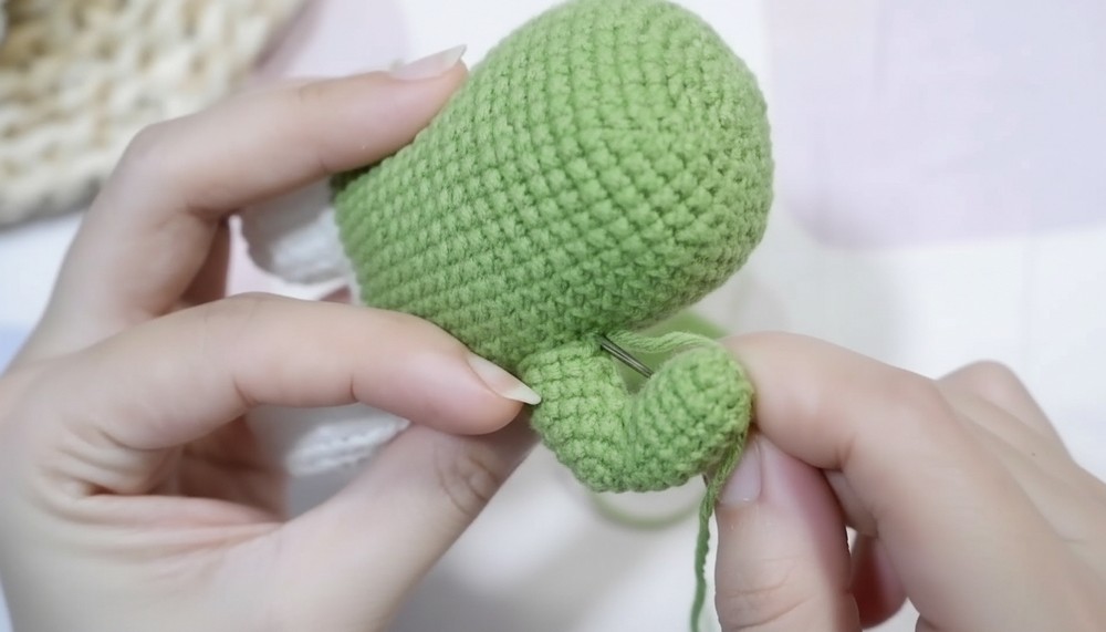 - Sew arms on either side between rows 17 and 19 (adjust for symmetry).