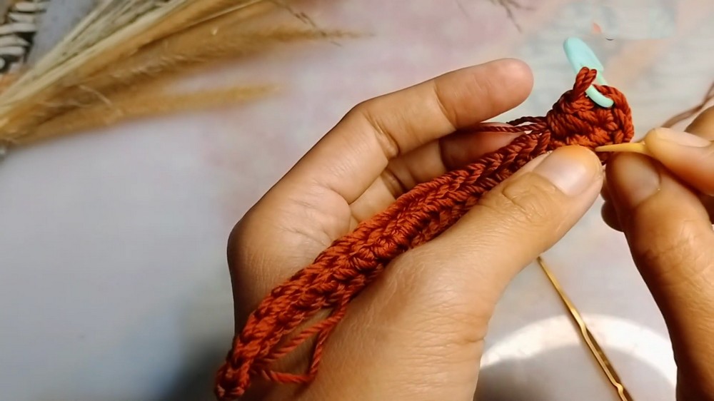 - Continue working around the opposite side of the chain with 1 sl st into each chain.