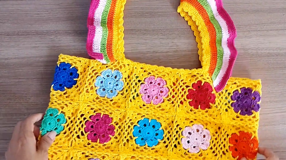 - Elegant Straps: The loosely flowing, crocheted straps complement the floral design perfectly.