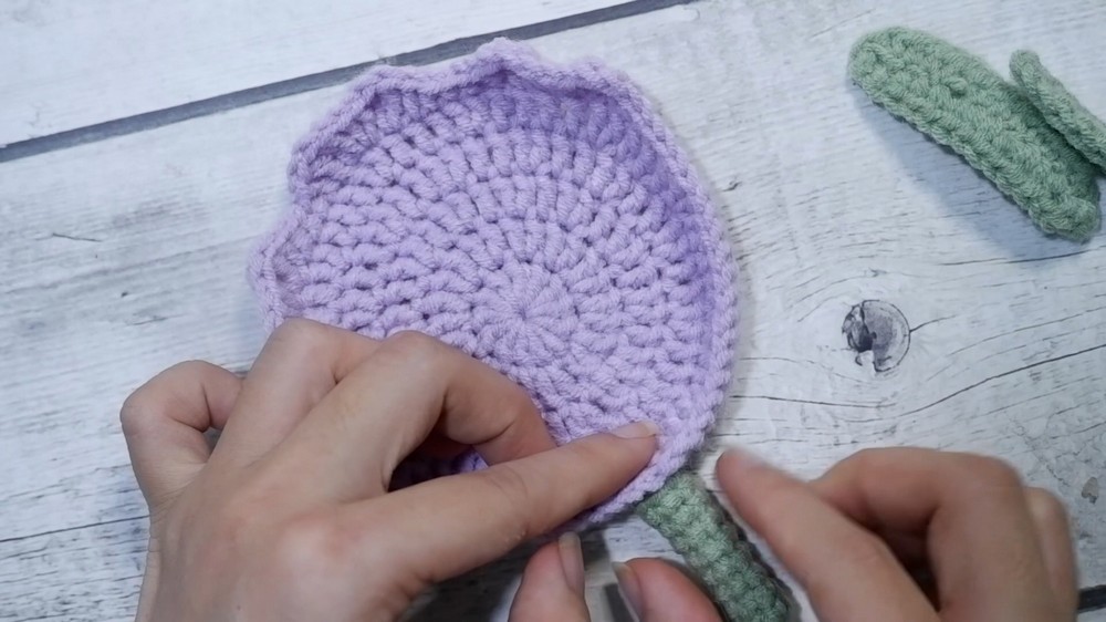 - Crochet 18 single crochet around to even out the round and complete flower shape.