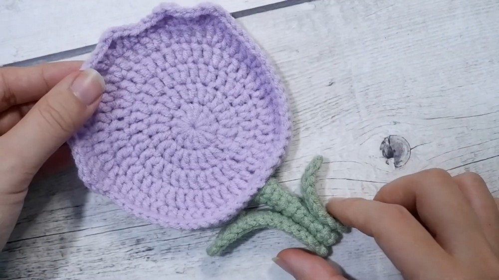 - Chain 5, then crochet 5 sc back along this chain to form a leaf shape.