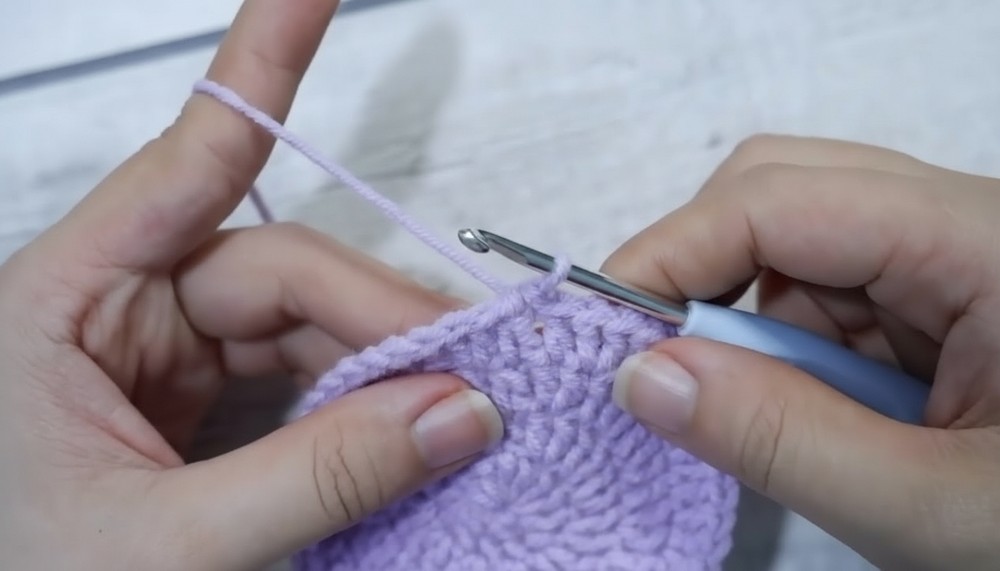 - Crochet 3 sc stitches, then 1 increase stitch (2 sc in one stitch).