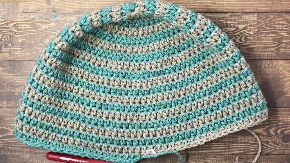 - Once the crown of the beanie is wide enough (after ~10 rounds), stop increasing.