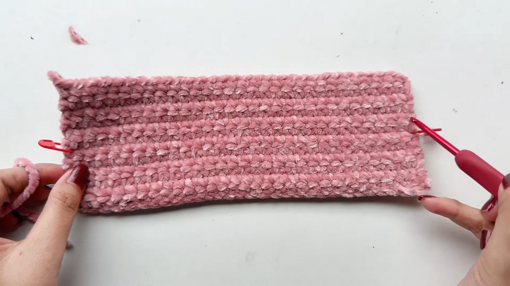 - Ch 1, turn, and work 42 Sc back and forth for 4 rows.