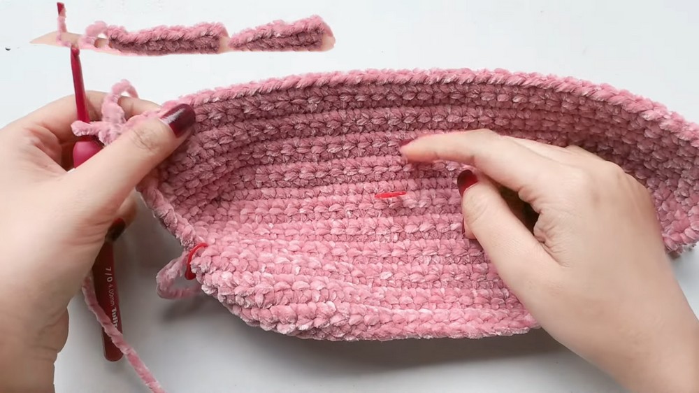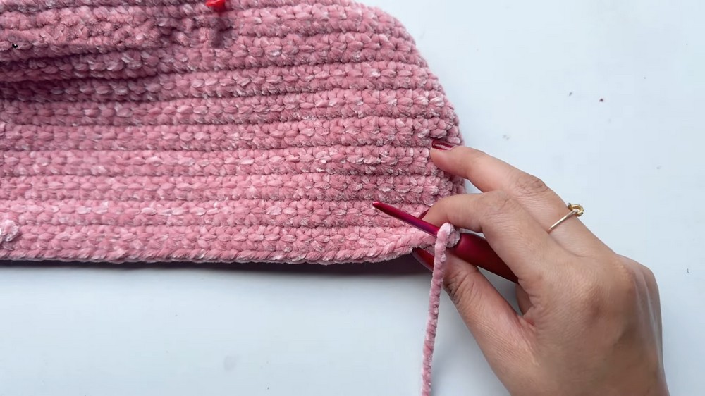 - Use Sc stitching to sew the edges of the bag together.