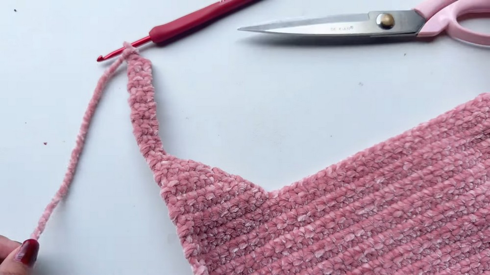 - Work 34 Sc, leaving the last 4 stitches unworked: