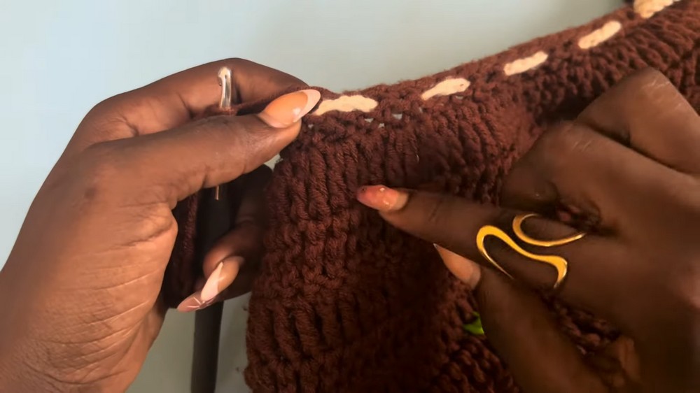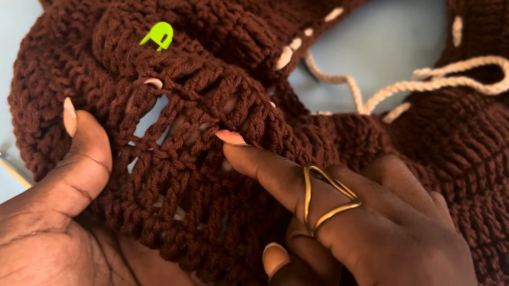 - Alternatively, create a chain of about 170-180 stitches for your waistband, then thread through the skirt’s top holes, adjusting for comfort.