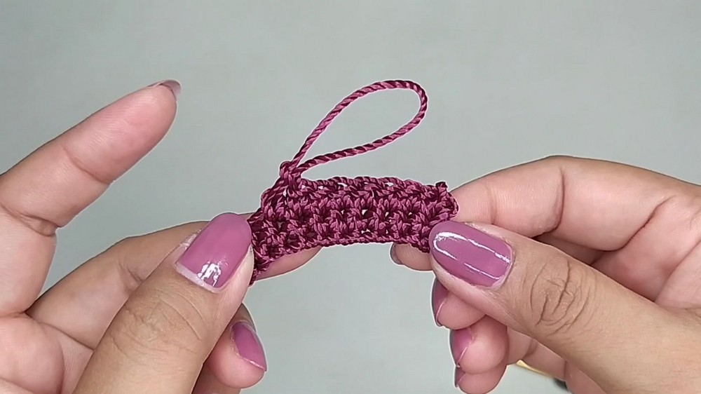 - Make 1 sc in each stitch, chain 1 at the end, and turn.