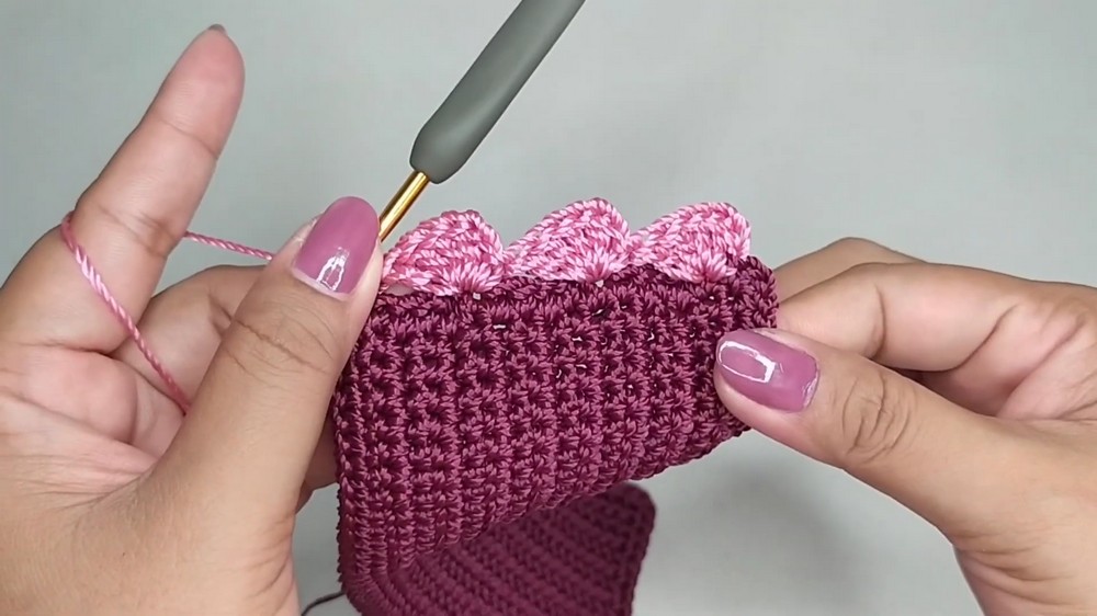 - Once the base is complete, single crochet around the edges to form the border.