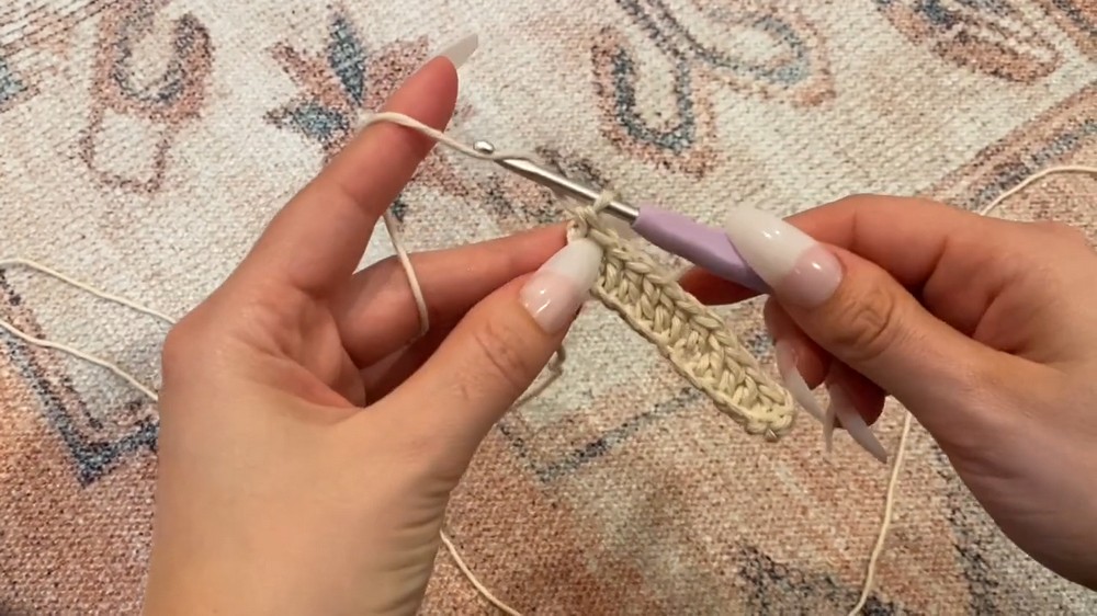 - At the start of every row, chain 1, flip your work, and place 1 double crochet in the first chain.