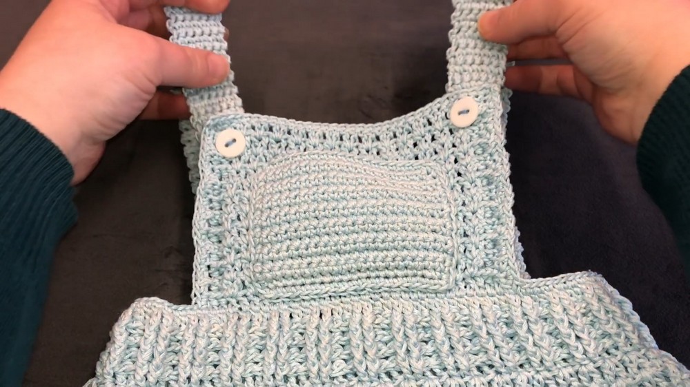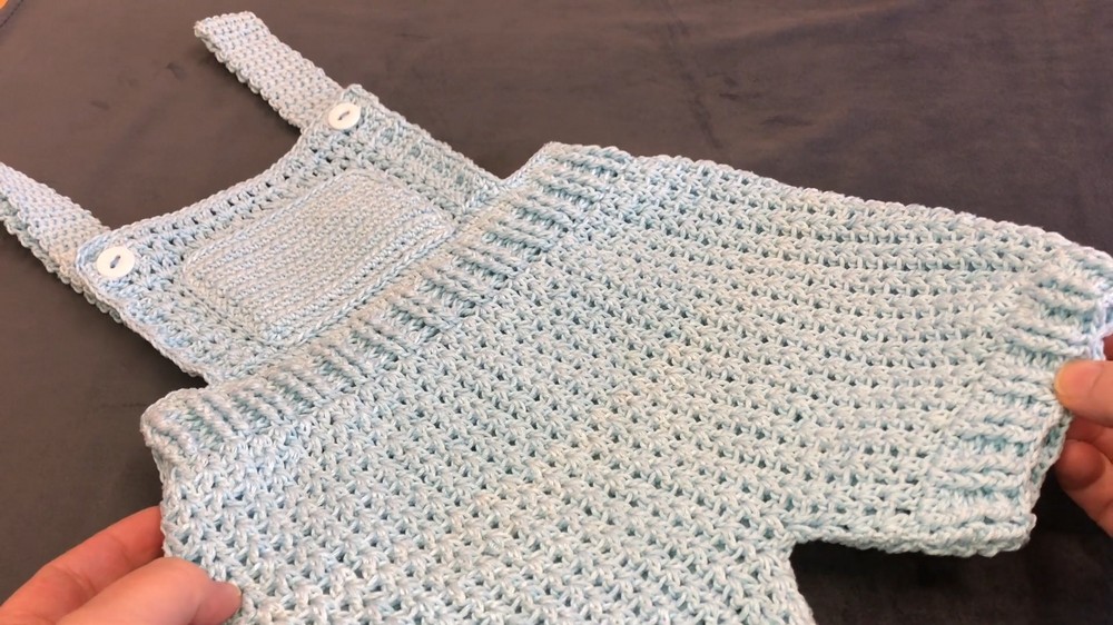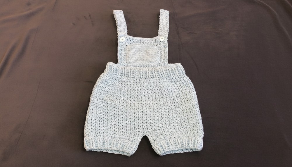You’ve completed an adorable pair of crochet baby salopettes! These versatile rompers can be customized in yarn color and size to suit any baby’s wardrobe. The detailed texture and functional design make this a perfect gift or keepsake.