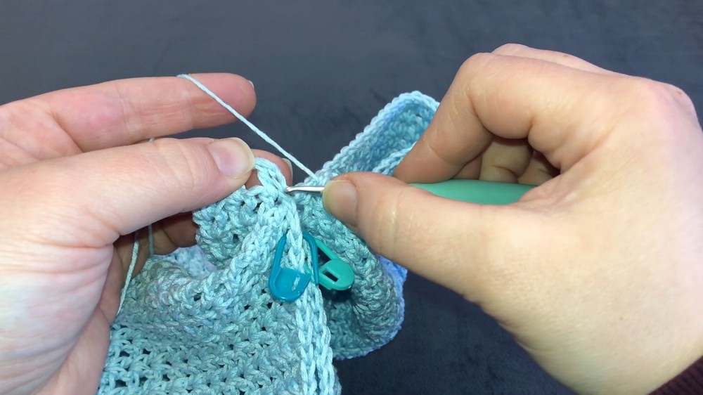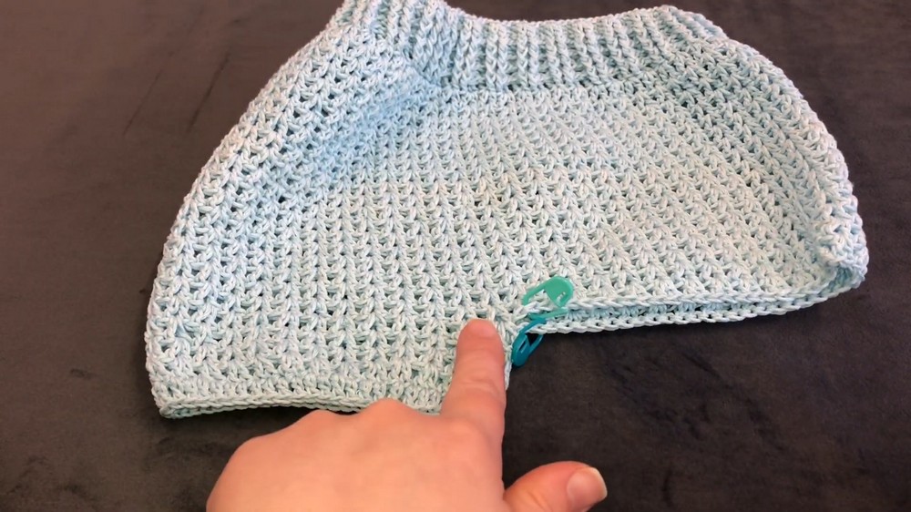 - Place a stitch marker in the middle of the body to indicate the leg openings.