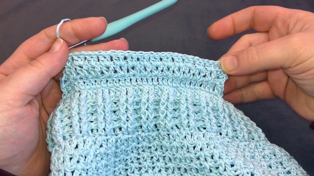 Round 3-6: Repeat Round 2. The texture creates the ribbed waistband.