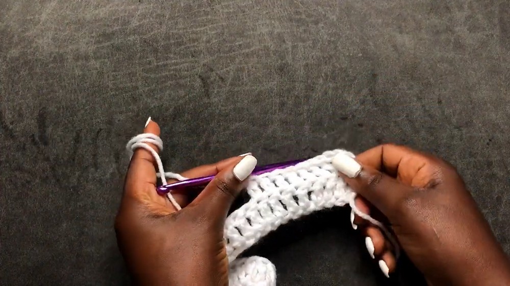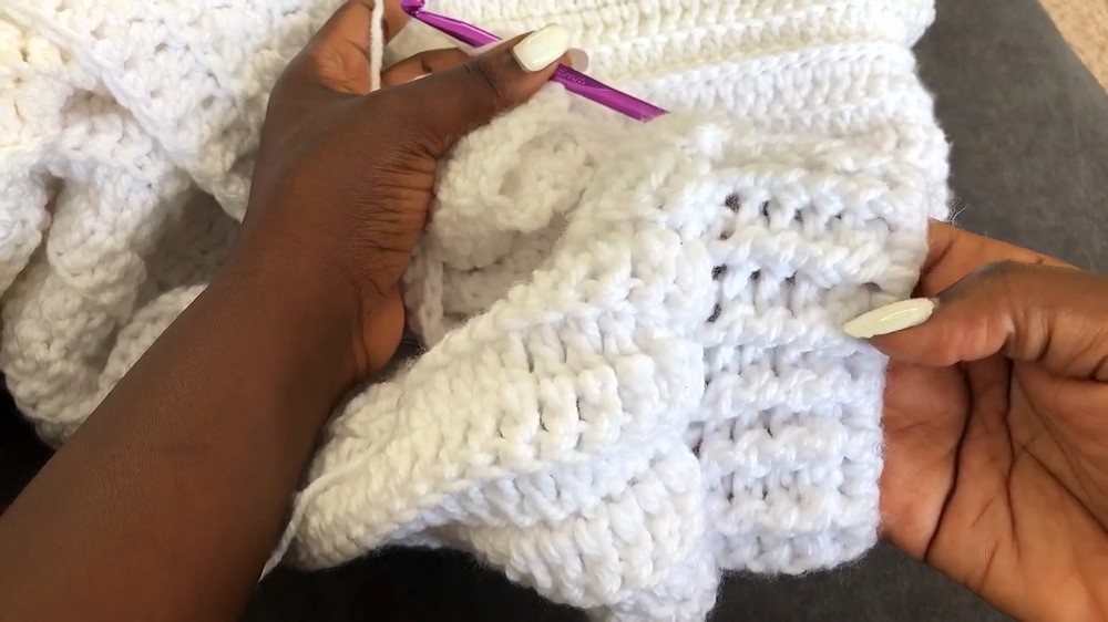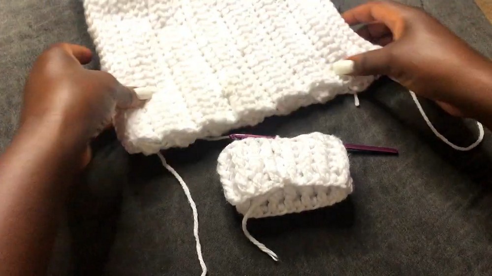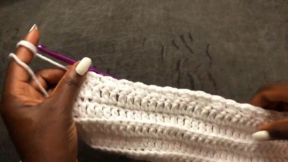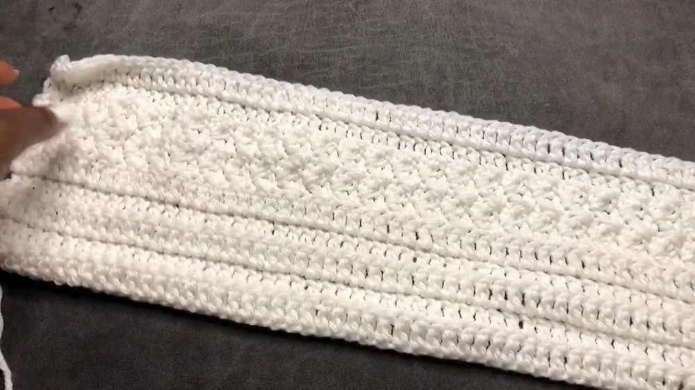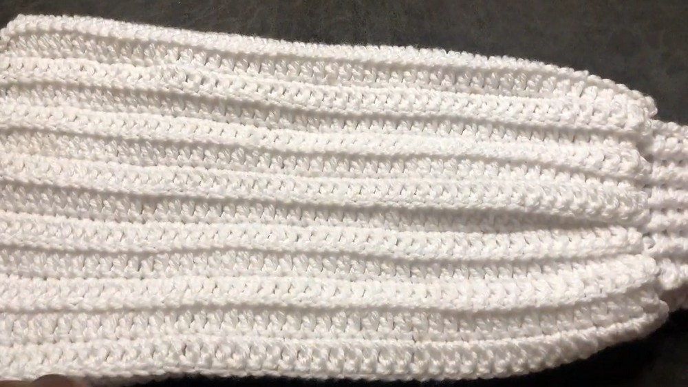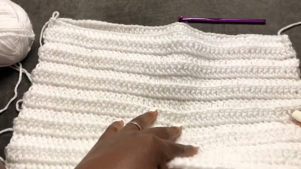 - Continue working BLO double crochets until piece measures about 21 inches length or desired oversize length.